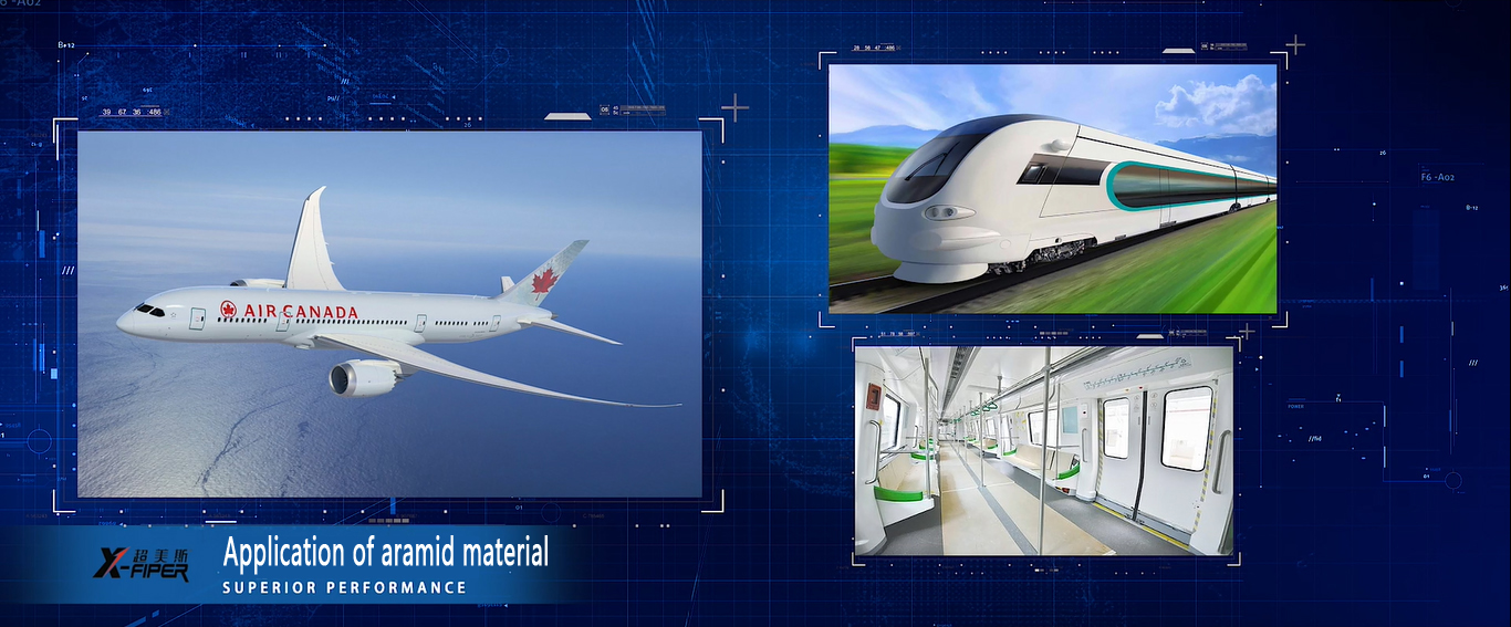 X-FIPER aramid products have wide range of applications and bright future. It has been widely used in the areas such as aviation, high-speed rail train, light rail train, automotive, high-voltage insulation , fire service, industrial protection, wind power, household appliances, high temperature filtration.