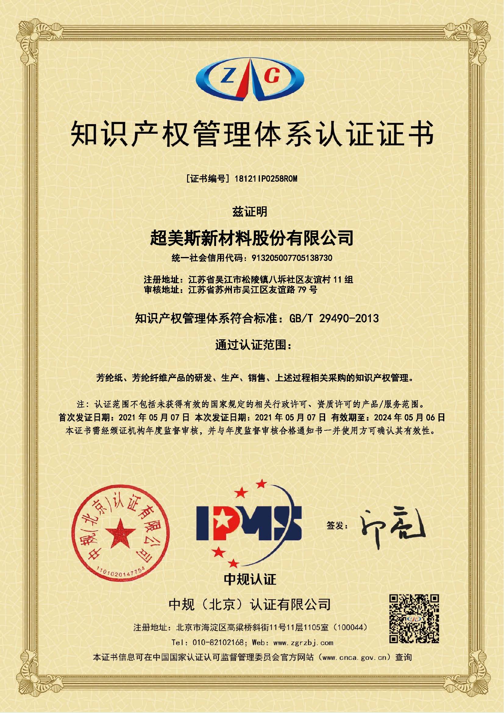 研发技术部牵头,各部门通力配合,公司于2021年5月通过中规(北京)认证有限公司审核并取得知识产权管理体系认证。这将有利于公司规避知识产权争端和防范相关经营风险,增强全体员工的创新意识和创新能力,提高公司的研发效率与效益。通过有效的知识产权管理,进一步整合发挥资源优势,建立良性的知识产权创造模式,增强企业的自主创新能力,将知识产权市场价值最大化。